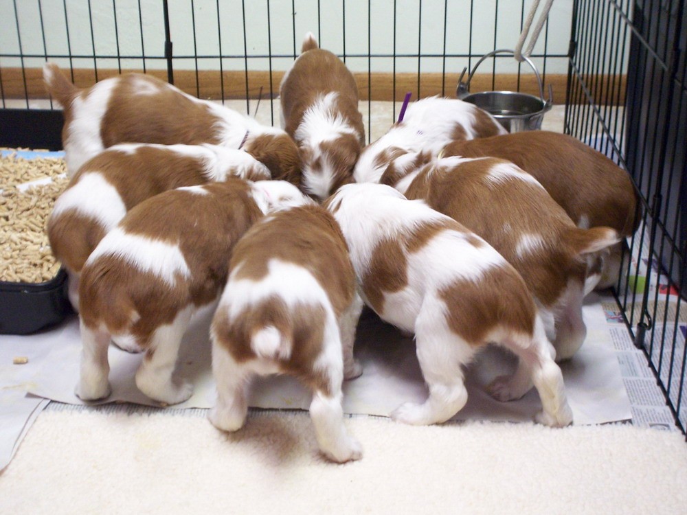 Well, it has been three years since we have had a litter of Welsh Springer Spaniel puppies here at home, and we are super excited! Puppies will be ready to go to their homes Fall 2023. What is extra special about this litter is it was dual-sired. Yes, two daddies! Pups will have a DNA test to determine which one is their dad. Puppies were delivered here at Fox River Spaniels on July 15th. All ten are healthy and beautiful.