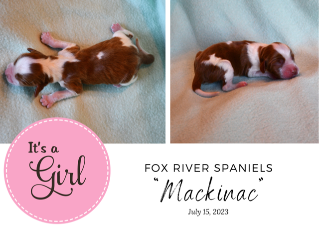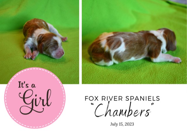 Inquiries invited. Best way to reach me is to send me an email – foxriverspaniels@yahoo.com. I will then email you a questionnaire to fill out and return. I am especially looking for show and performance homes, but they all need a good family as well. The cost of one of these pups is to be determined after I know who the sire is, and number of males and females. Pups will be ready to go to their family early fall. A great time to add a puppy to your home!