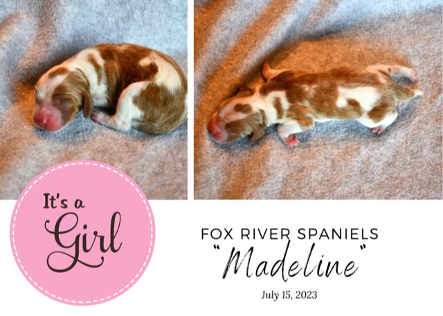 We have puppies! Tilly delivered her first litter of puppies on June 27th 2020. She has 8 gorgeous little red and white spaniels. There are three boys and five girls. Sire is our Higgins, his second litter.