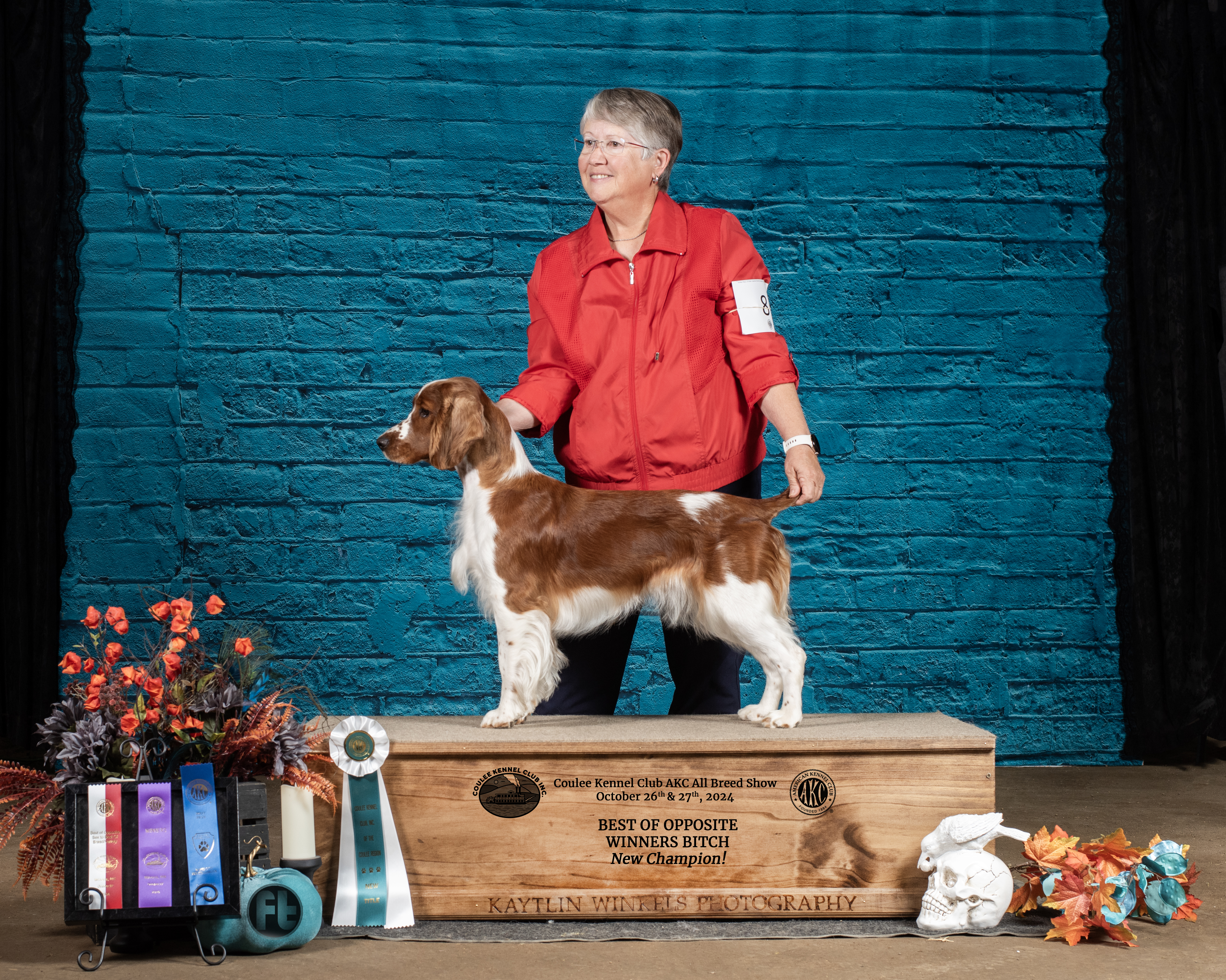 My 15 month Welshie, Anwen, finished her breed championship at Coulee Kennel Club’s show in Winona, MN on October 27th by going Best of Opposite over specials.